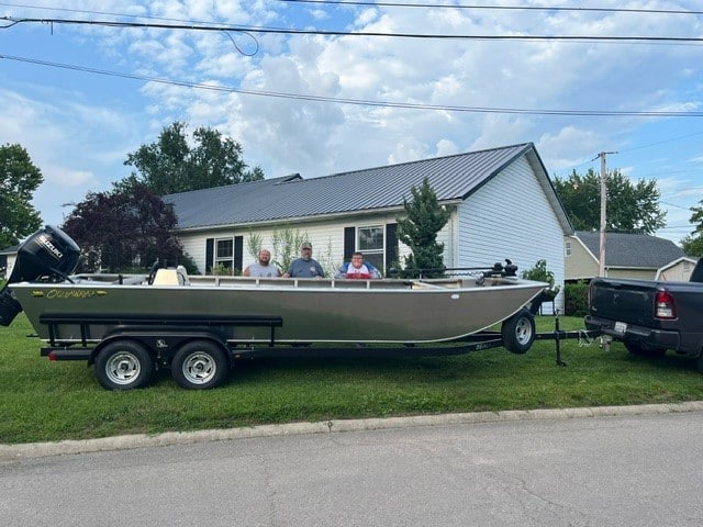 Options: (2)- 40" Long Rod Lockers/ (2)- Trolling Motor Brackets W/24V Heavy Duty Wiring/ 2' x 2' Stern Storage Box/Running Lights/6-Gang Fuse Panel/Switch/1100 GPH Bilge Pump/Switch/18" x 36" Live Well W/Pump & Aerator/23 Gallon EPA Compliant Custom Built Aluminum Fuel Tank/(4) Stainless Steel Pop Up Cleats/(3) Removable Pyramid Seat Bases/Tandem Axle Aluminum Trailer W/(2) 3,500 LB Axles/LED Lights/Winch/Coupler/Polyethylene Boards/Bottom & Side Bunks/Tongue Jack & Stand/EZ Lube Axles/Galvanized Wheels/Electric Brakes/Spare Tire & Bracket